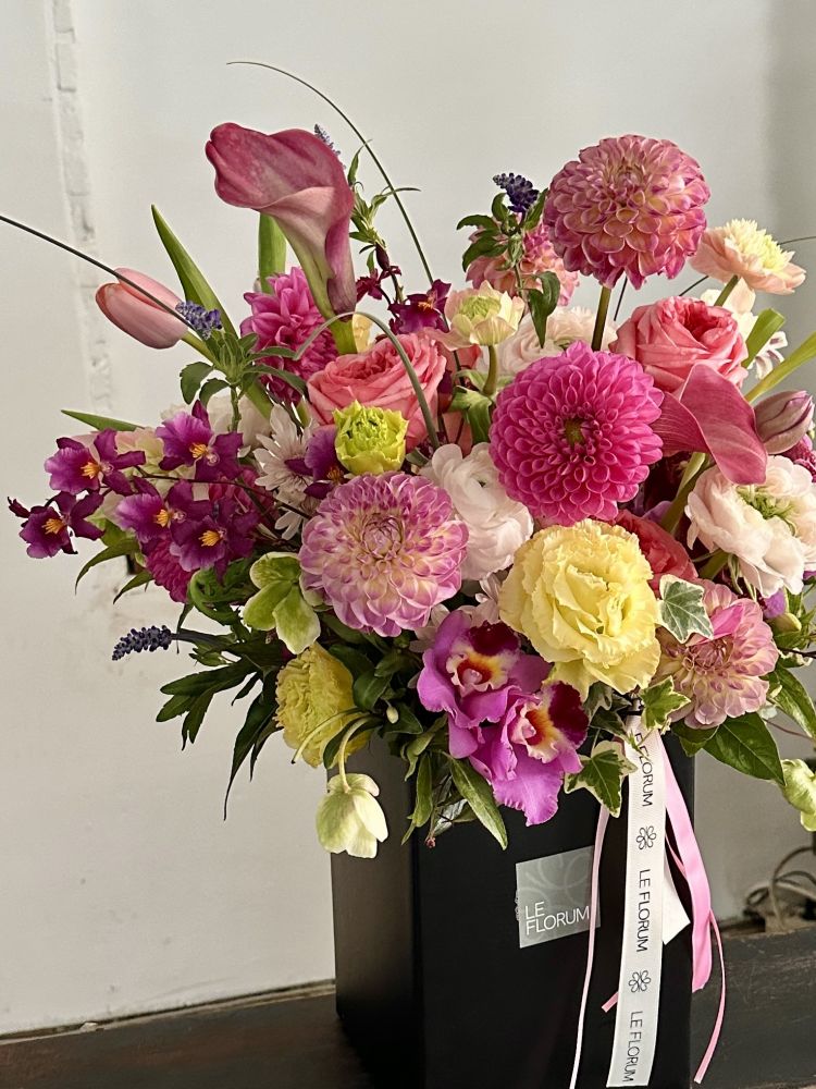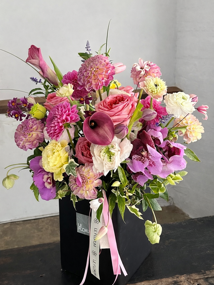 핫 핑크 컬러를 중심으로 생기 넘치는 꽃들을 풍성하게 담았습니다.