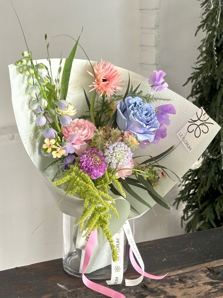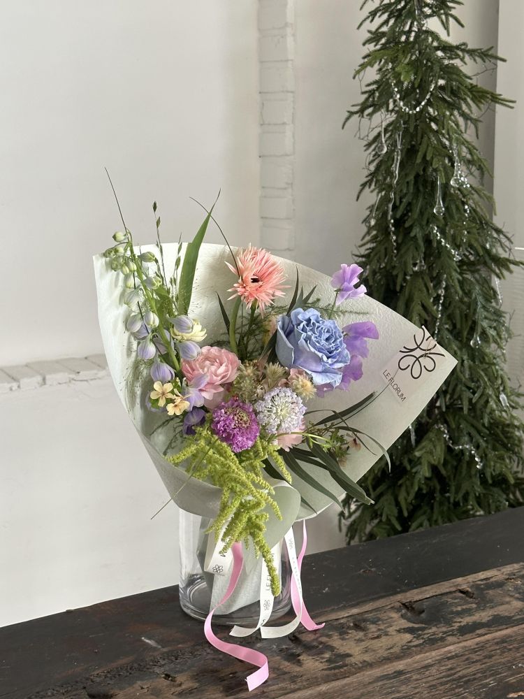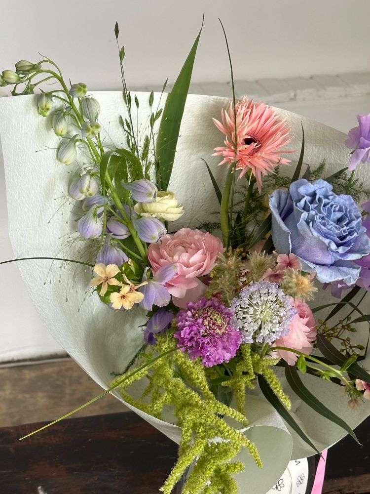 계절 꽃을 중심으로 섬세하게 구성된 파스텔톤 꽃다발입니다.